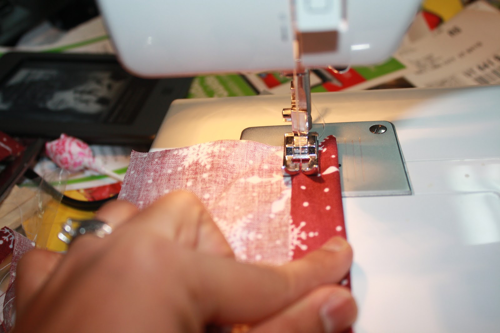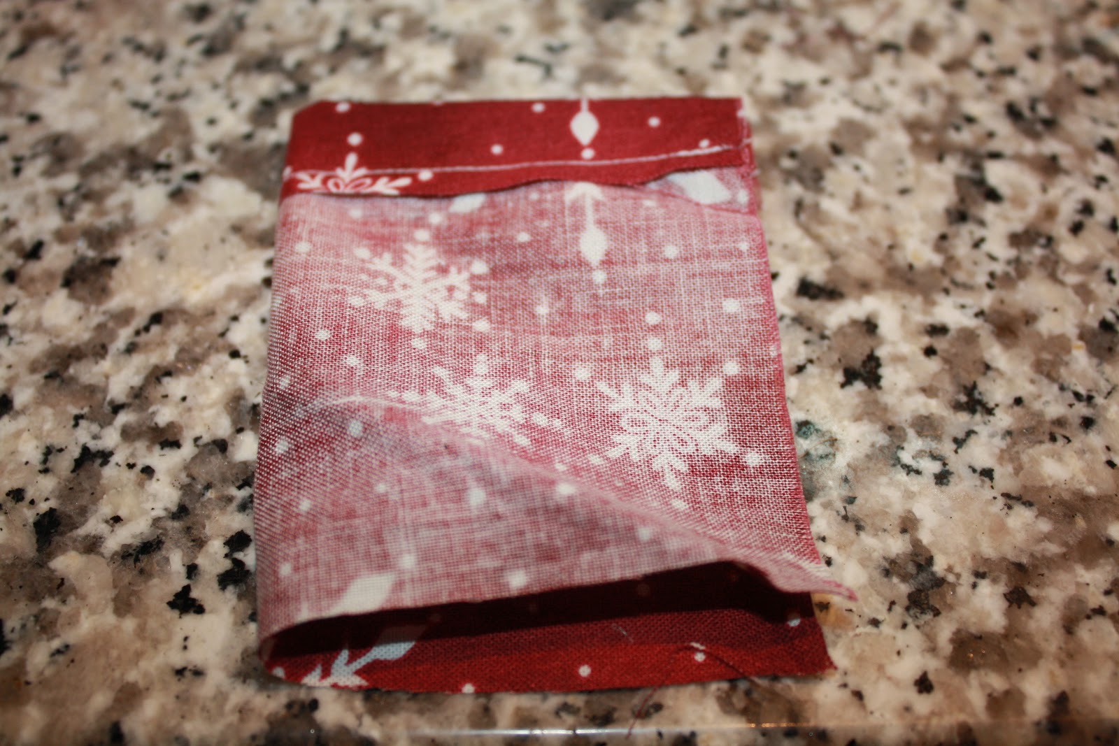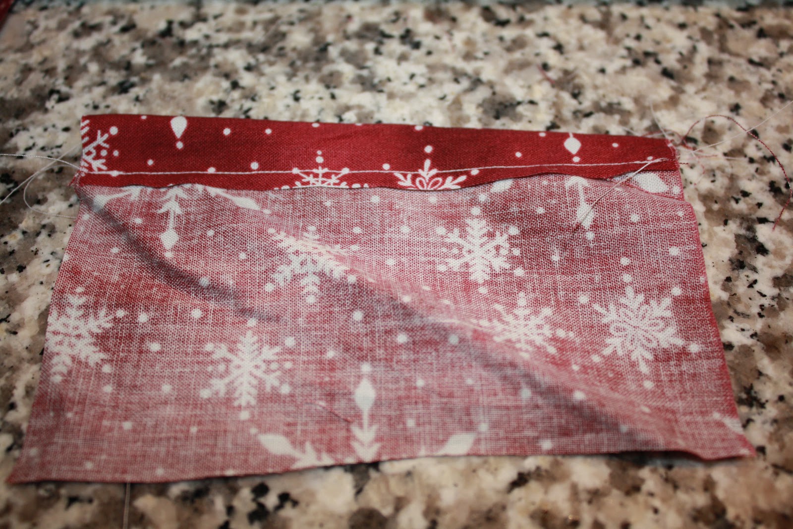 1.b. Fold down the longer side and sew it down. I used a straight stitch for most of them and tried a zigzag on the last few, but I don’t think it really matters.
