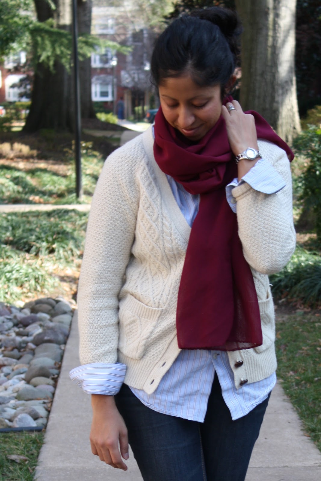 Sweater: F21; Shirt: Downeast Basics; Jeans: Target; Booties: Zappos; Scarf: India