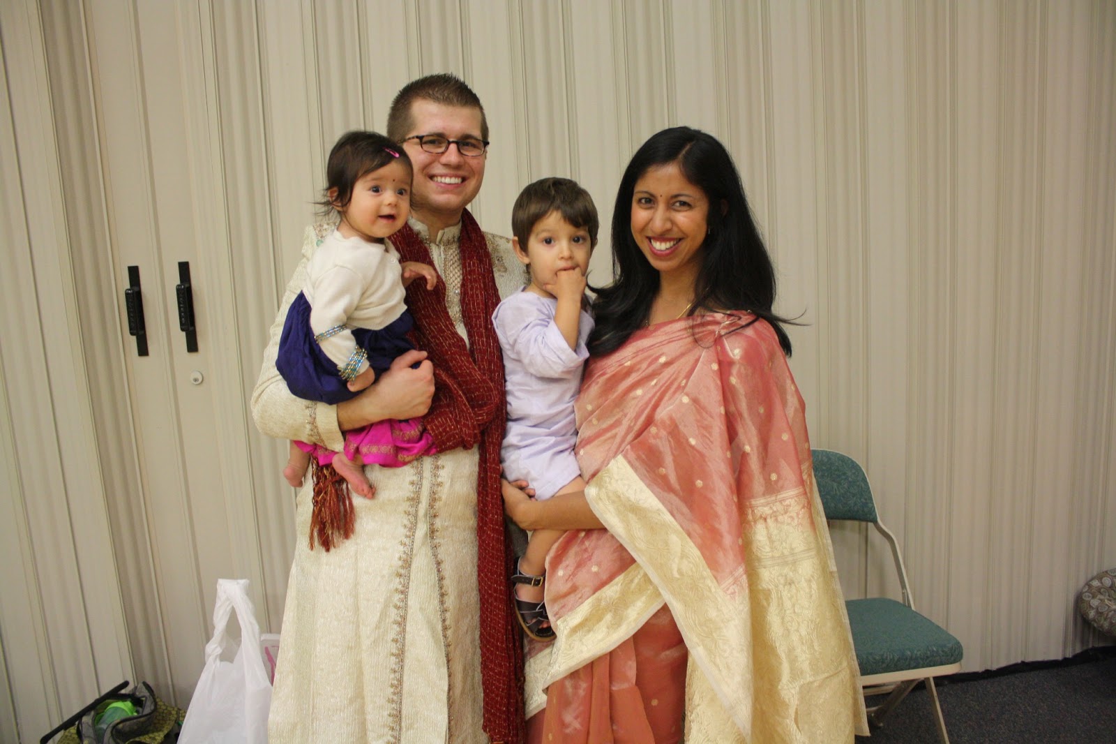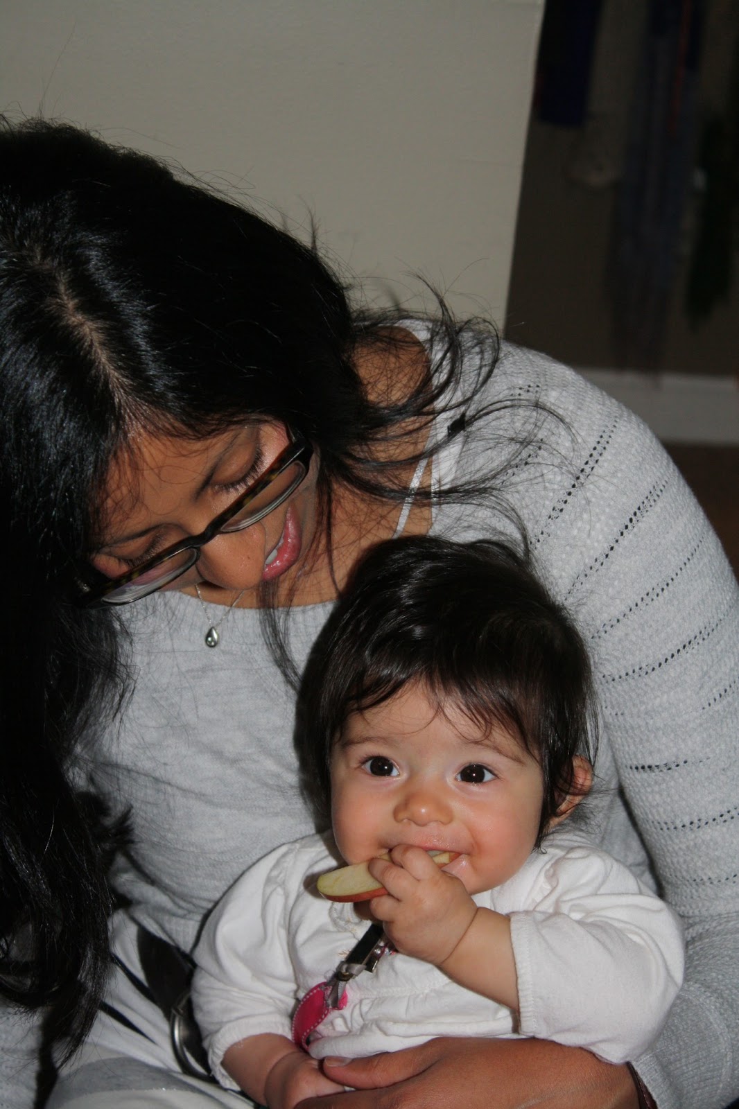 You also got to enjoy your first Easter by gnawing on some empty eggs. Pretty sure that was the most exciting part of the holiday for you. That or getting to match the entire family with green gingham bows/bowties. I will so totally do cheesy matchy accessories for as long as my children will cooperate. Along with putting you in adorable holiday dresses (or Indian dresses, as the occasion may necessitate…your first time and your amma [grandma] and I both almost died of the cuteness).
