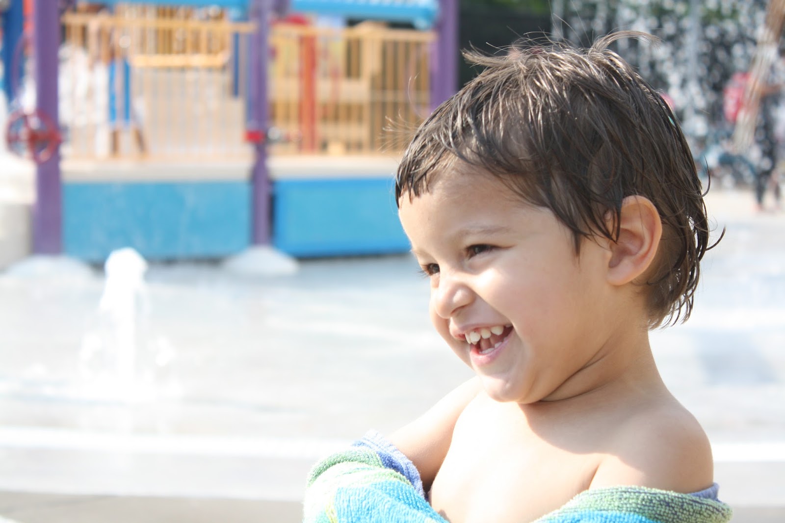 10:35am – Pluck up my courage and do perhaps my least favorite parental task – wake the baby. Put everyone in the car and drive down to a new-to-us splashpad in the District for playgroup.