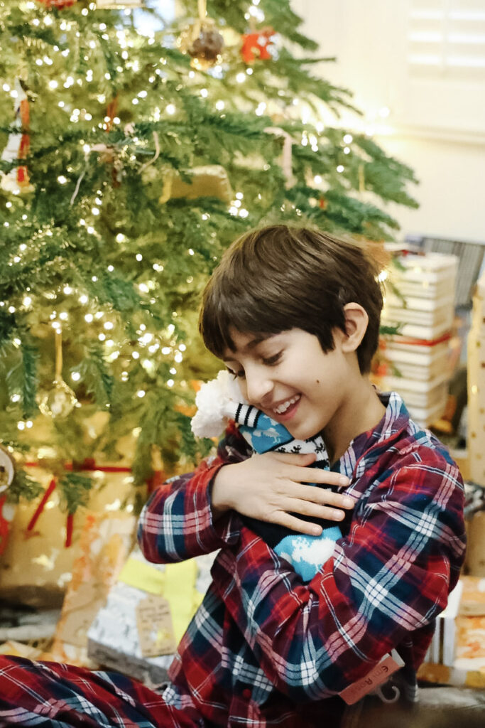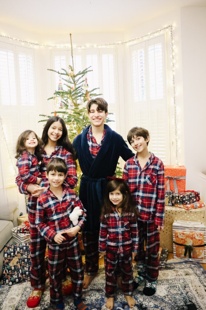 We actually gifted our kids their Christmas pajamas at the start of the season – we love enjoying them throughout festive season. We did a these cute and super stretchy & soft bear pajamas from Primark here in the UK this year. (THESE family matching pajamas in the US are similar, affordable, and from the same brand as my favorite summer nightgown.)