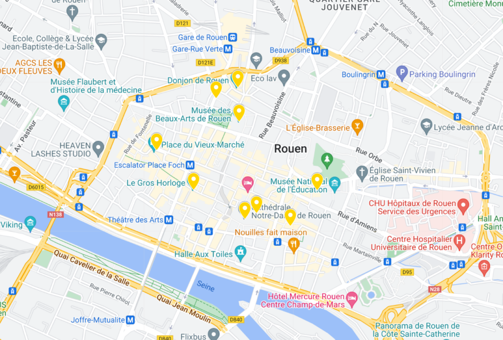 See THIS MAP to view all the best sites to visit on a Rouen family vacation!