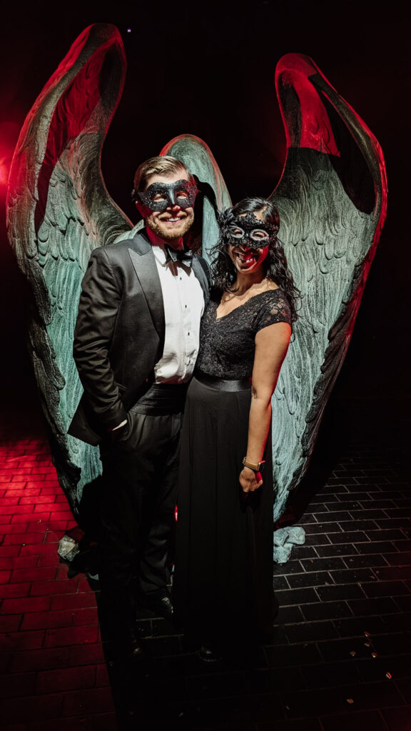 After the museum, we headed back to our hotels to change for our other main event for the week – Masquerade! I’d been looking forward to this ever since I had several friends attend and absolutely rave about it. It’s basically an immersive Phantom of the Opera experience, and it is spectacular. The performers sing so close to you and you move through the whole experience. I don’t want to spoil any surprises for anyone who may attend, but just know that it is absolutely worthwhile and one of the most amazing theatre experiences I’ve ever had. For the event, people are encouraged to dress up (only black/white/silver allowed) – I wore this dress and purchased this set of 2 really fun and affordable masks for Dan and me to wear.