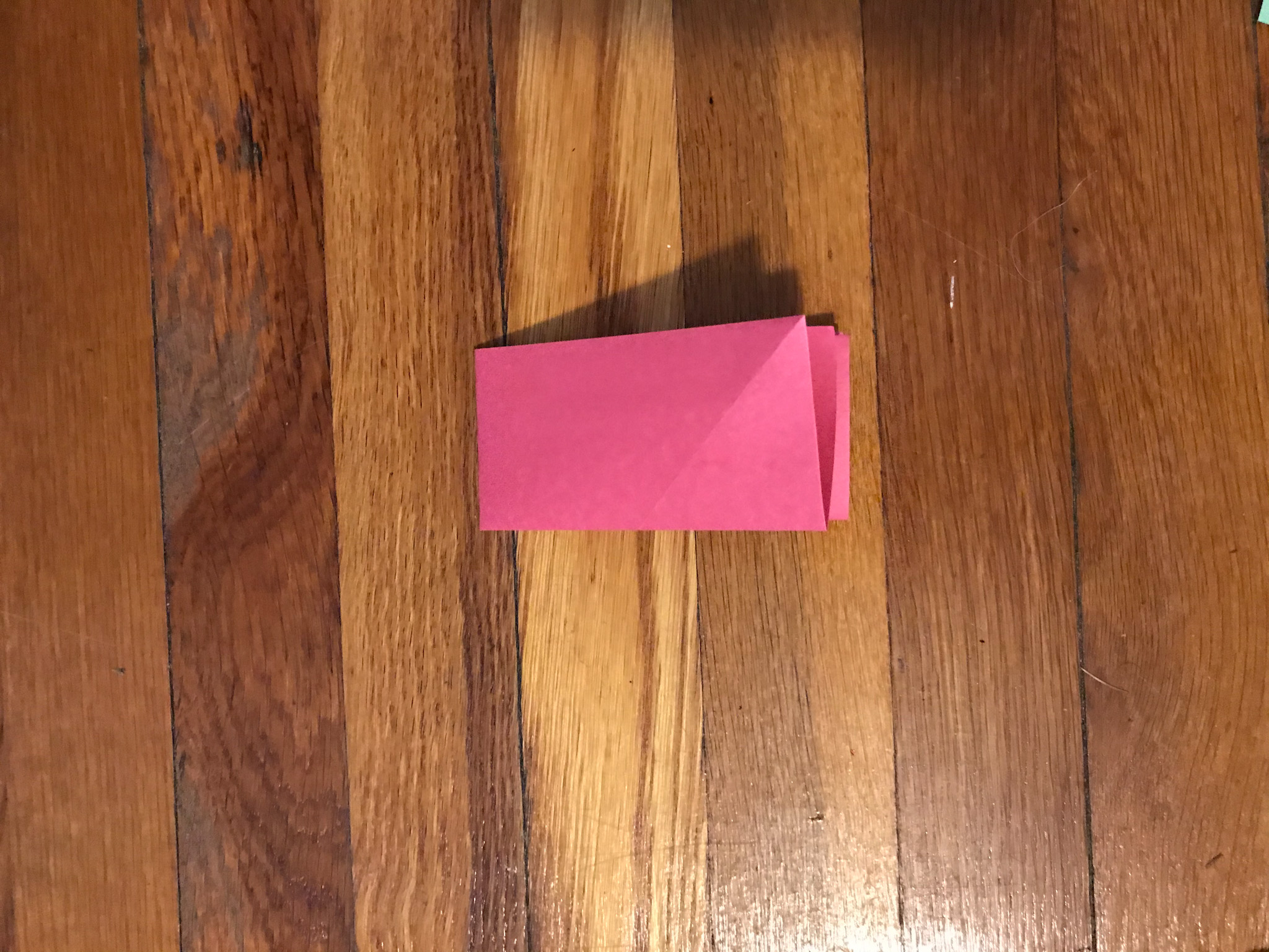 - Take the other half of the rectangle and fold another 45 degree angle towards the center (this looks almost like a heart)